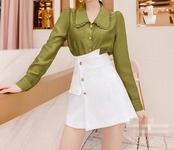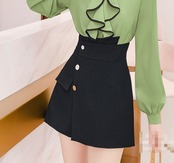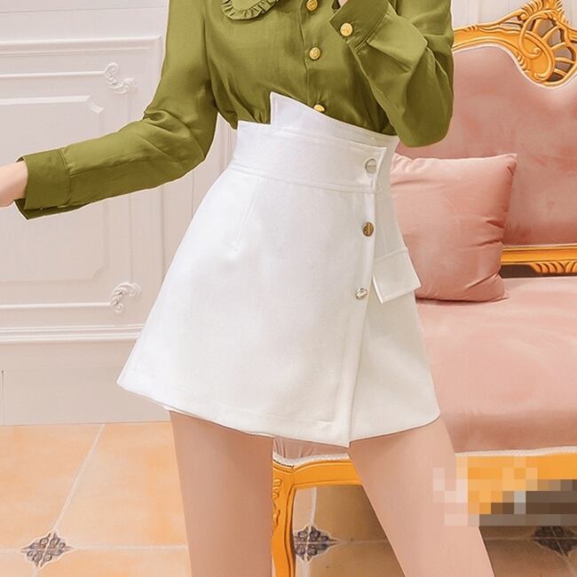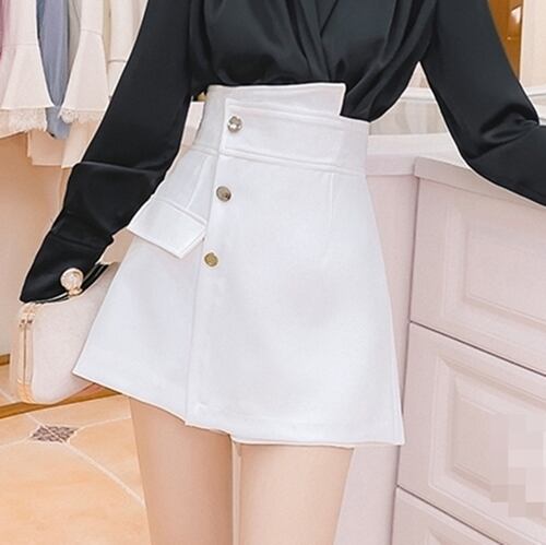 全2色 スカパン ショートパンツ ミニ丈 キュロット ボタン 短パン Aライン ハイウエスト 大人 上品 カジュアル デイリー きれいめ お出かけ デート 女子会 夏