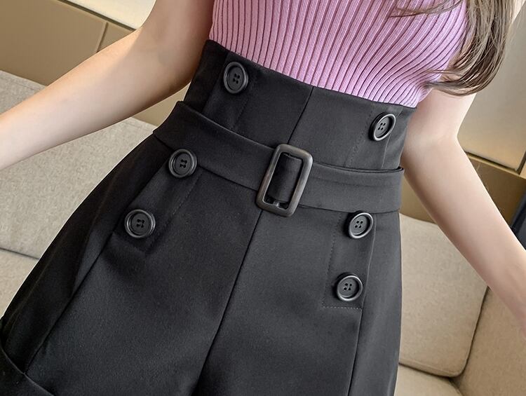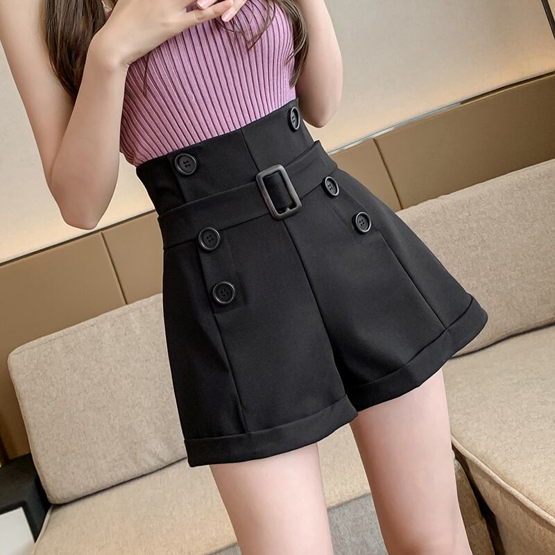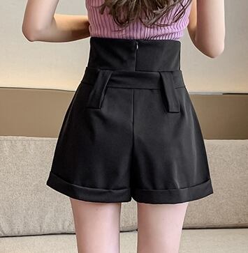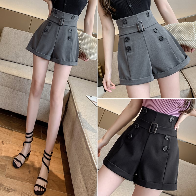 全2色 ショートパンツ ミニ丈 短パン フロントボタン ウエストベルト ロールアップ Aライン ハイウエスト 大人上品 カジュアル きれいめ お出かけ デート 女子会 シック 夏 秋