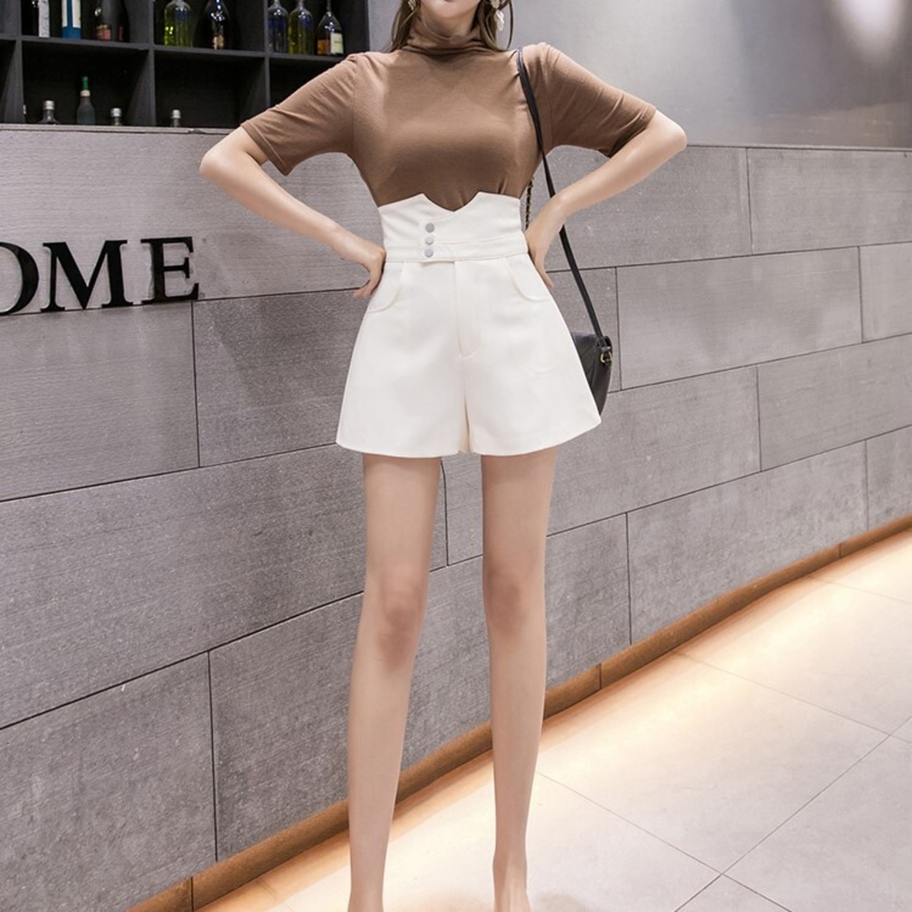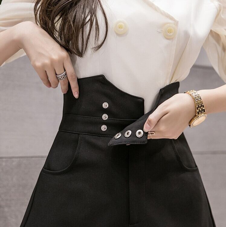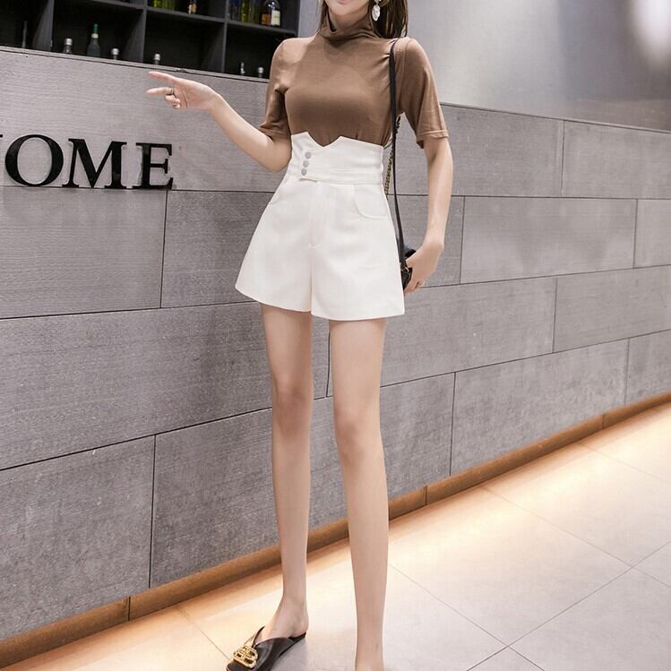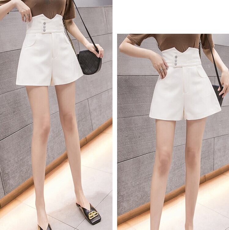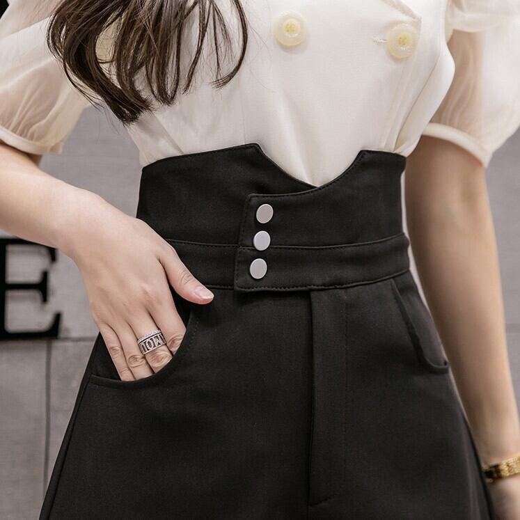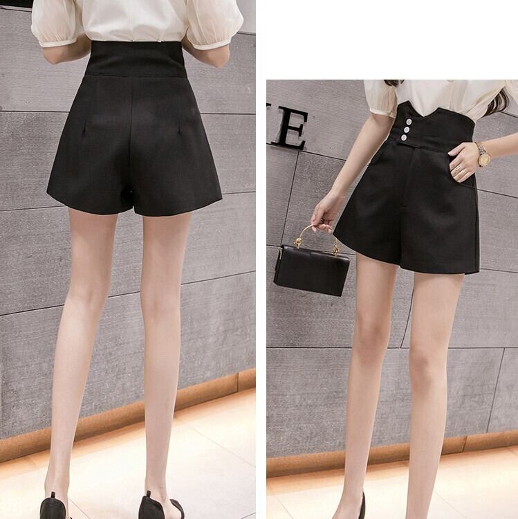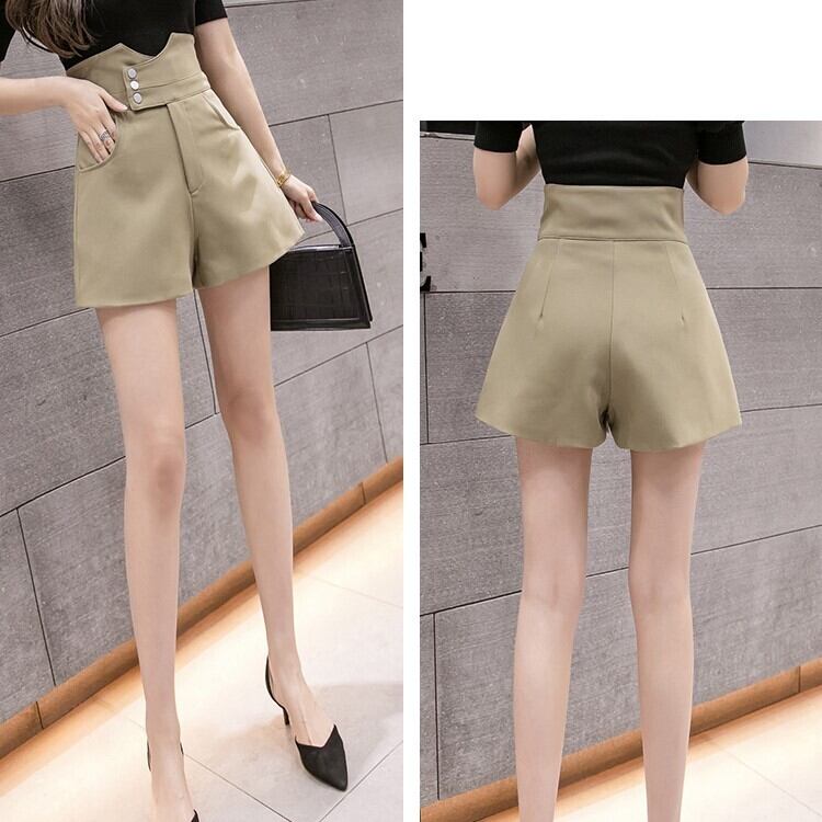 全3色 ショートパンツ ワイドパンツ ハイウエスと Aライン ショート丈 ボトムス きれいめ カジュアル かわいい シンプル レトロ お出かけ デート お呼ばれ デイリー 普段着 夏 アプリコット アーミーグリーン ブラック