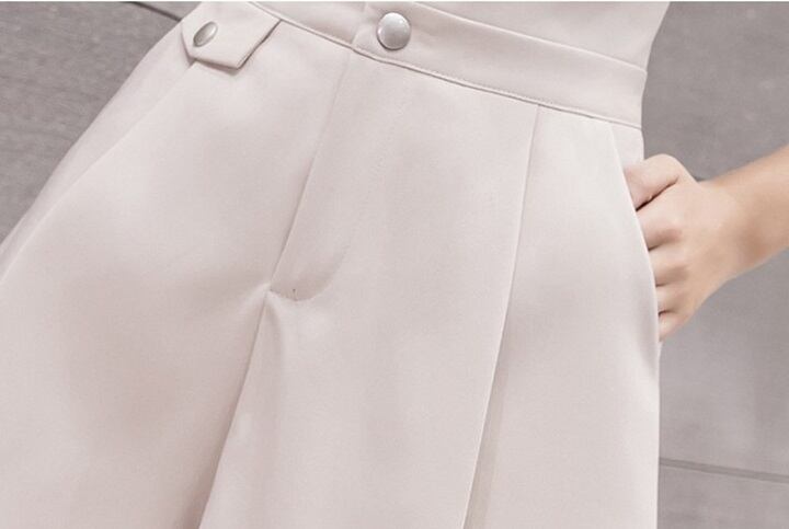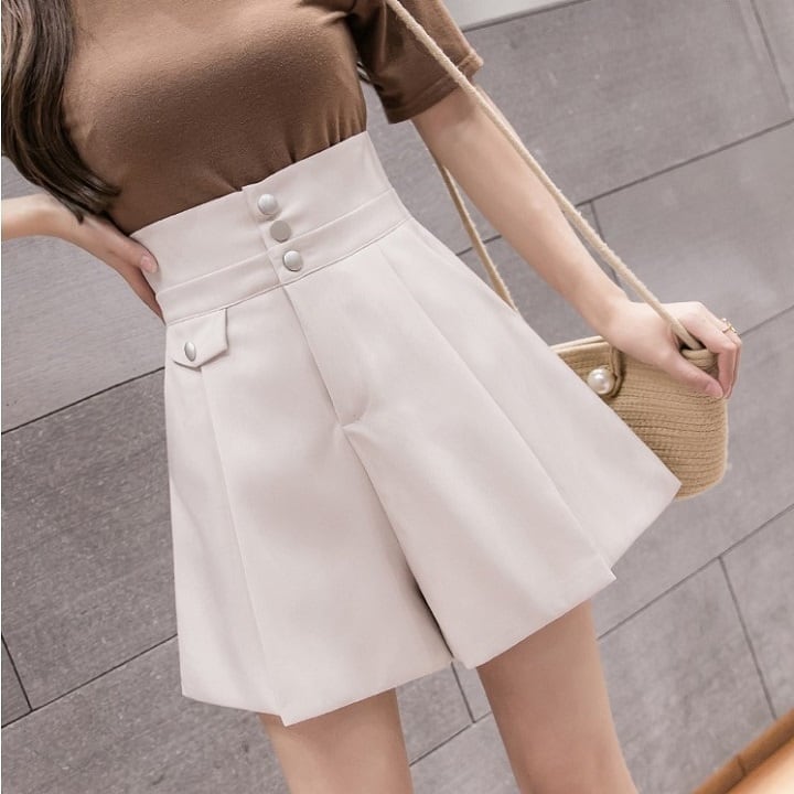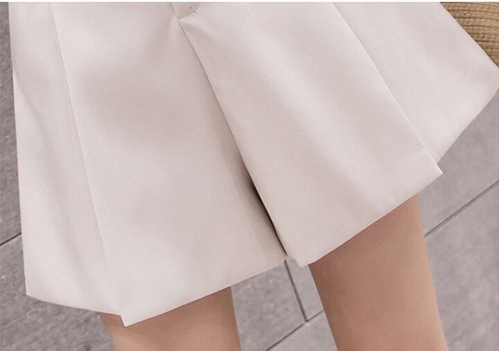 全2色 ショートパンツ ワイドパンツ フレアパンツ キュロットスカート ハイウエスト ショート丈 ボトムス きれいめ カジュアル かわいい シンプル レトロ お出かけ デート お呼ばれ デイリー 普段着 夏 アプリコット ブラック
