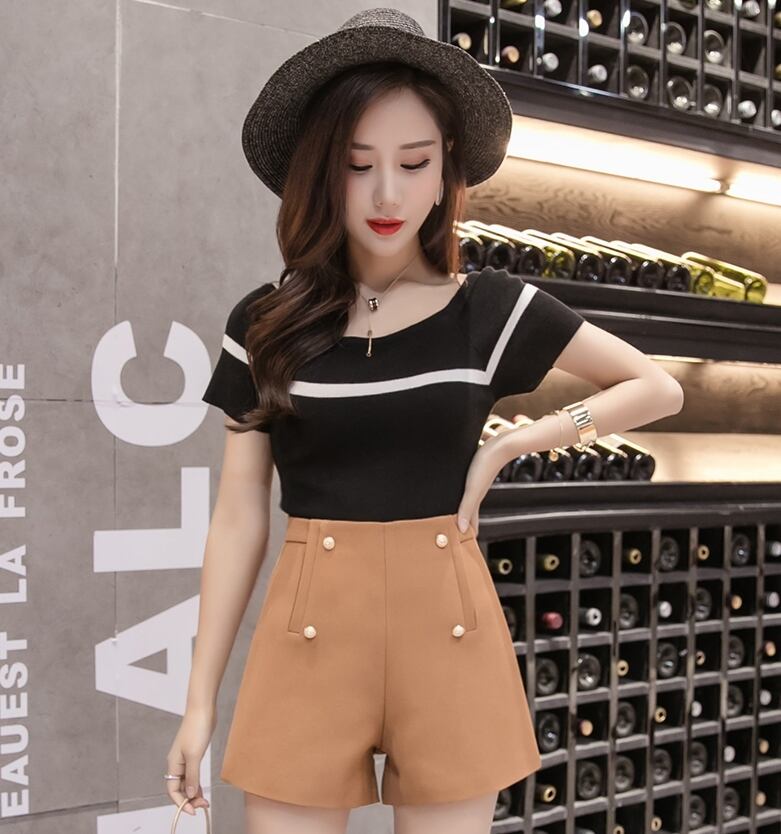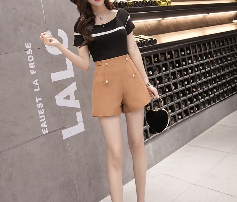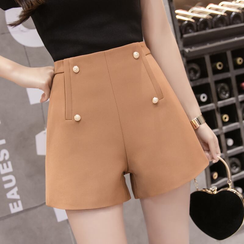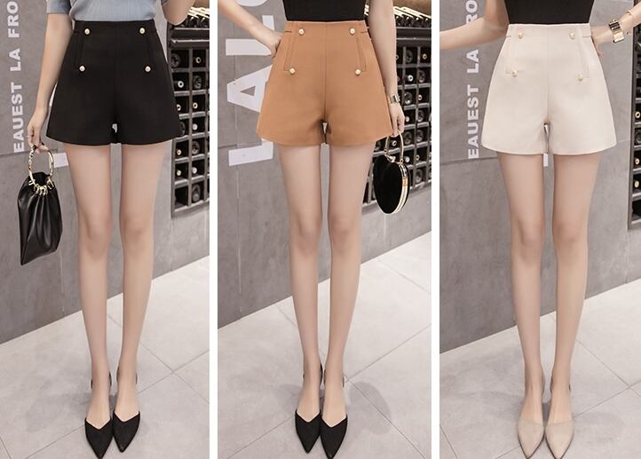 全3色 ショートパンツ ミニ丈 短パン ボタン Aライン ハイウエスト 大人 上品 カジュアル きれいめ お出かけ デート 女子会 シック 韓国ファッション 夏 秋