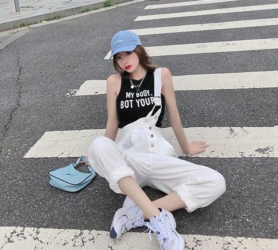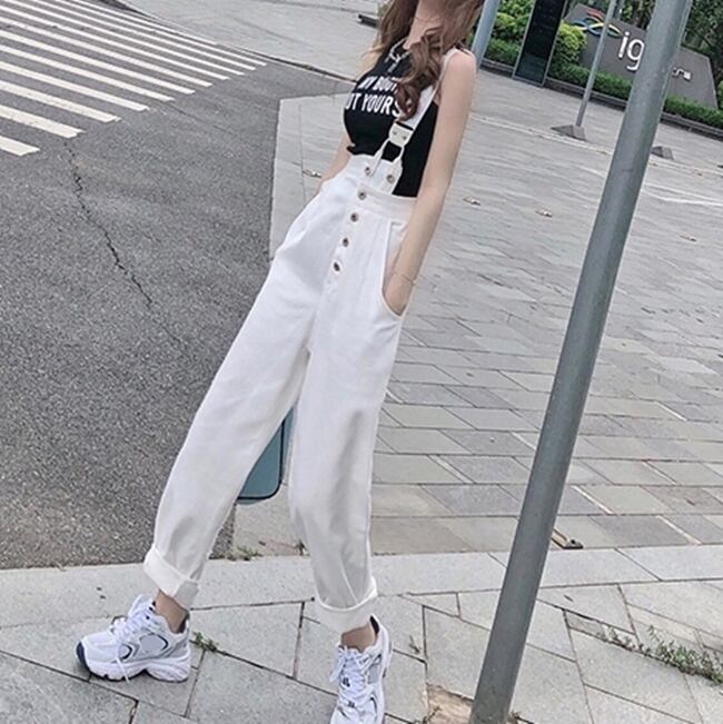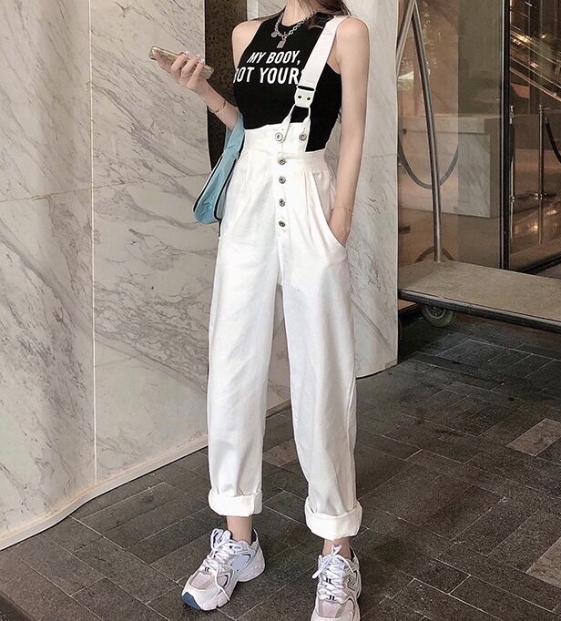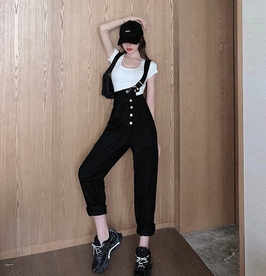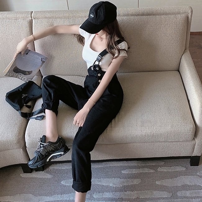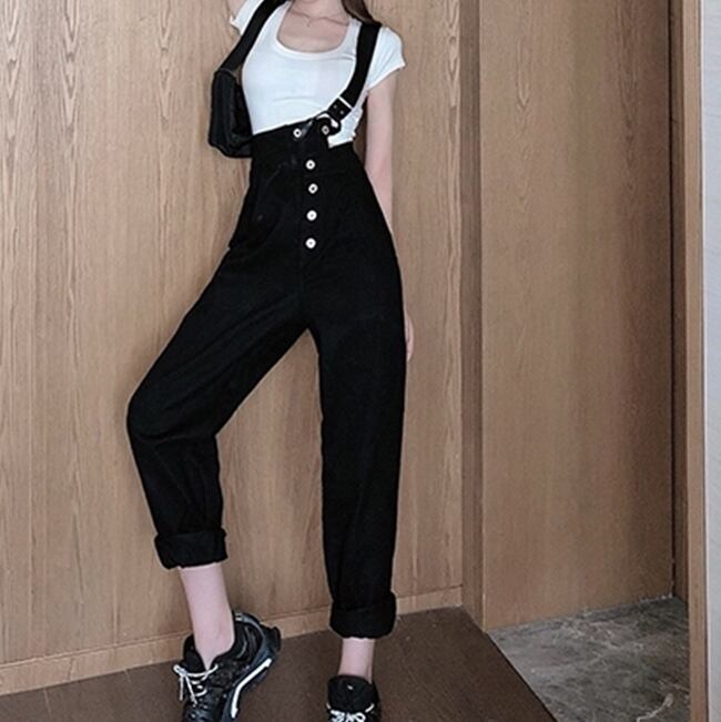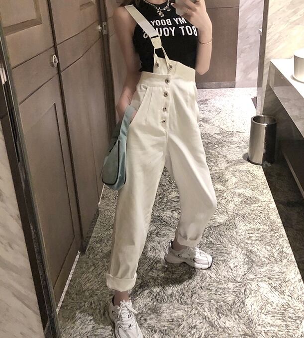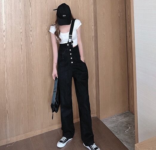 全2色 サロペット オーバーオール デニム ワンショルダー ワイドレッグ ボタン ロールアップ ストレートパンツ クール カジュアル お出かけ オールシーズン ハイウエスト 学生 韓国ファッション 夏 秋