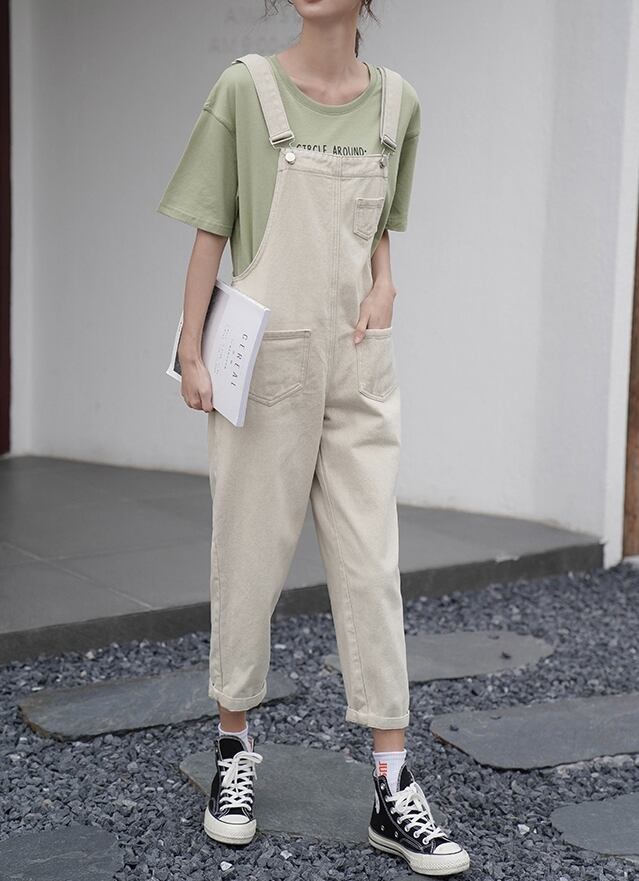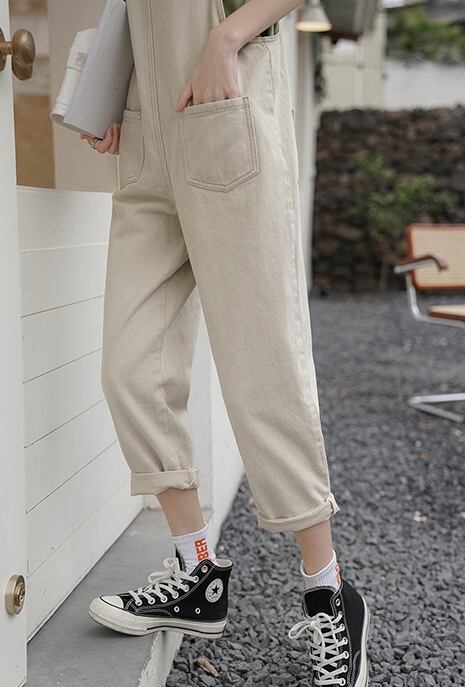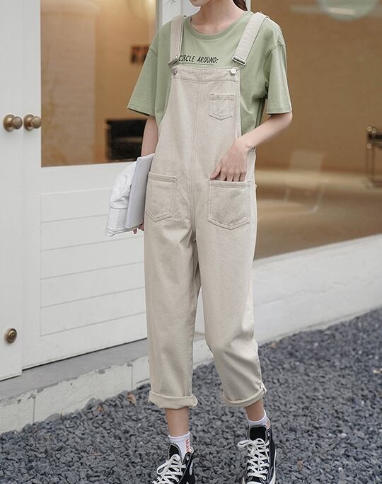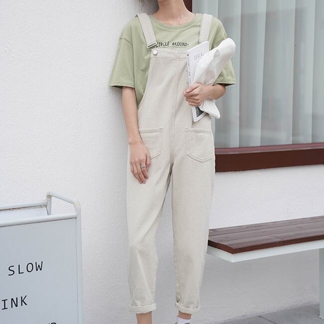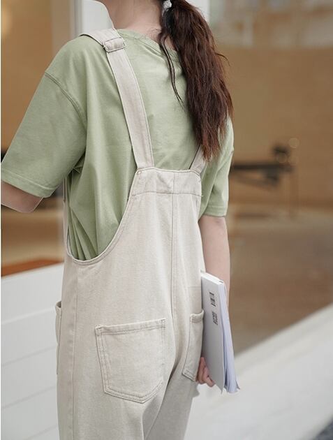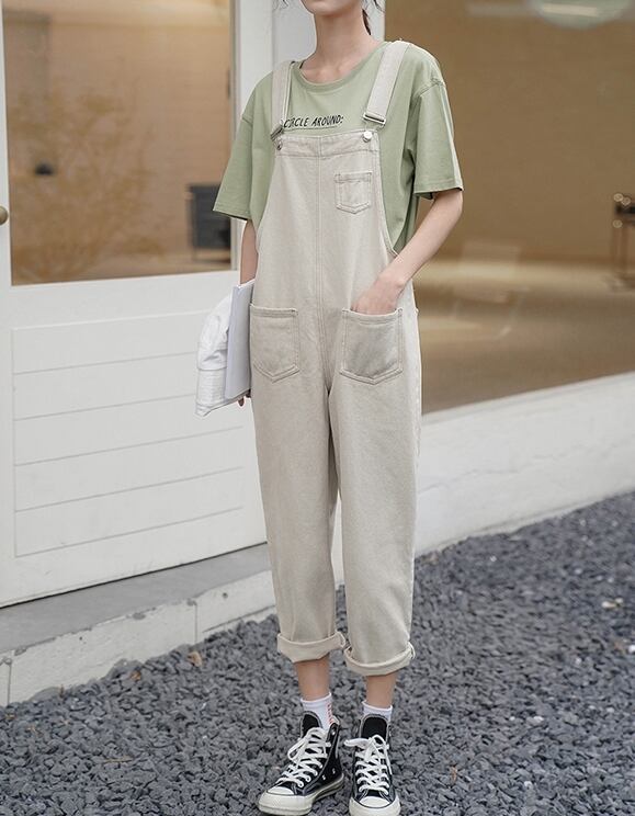 サロペット オーバーオール デニム ワイドレッグ ロールアップ 9分丈 ストレートパンツ クール カジュアル お出かけ オールシーズン シンプル 学生 韓国ファッション 夏 秋