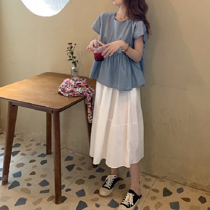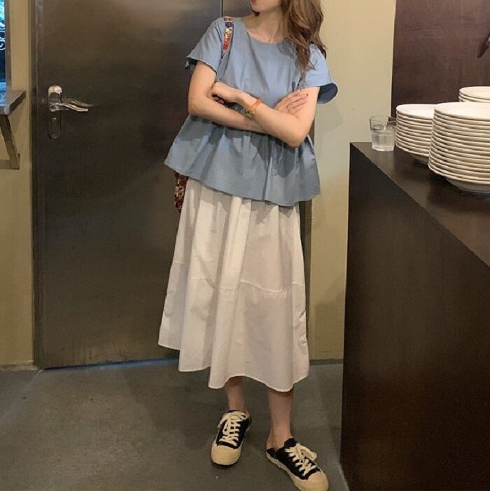 ブルートップス/イエロートップス/ホワイトトップス/アプリコットスカート/ホワイトスカート/ブラックスカート