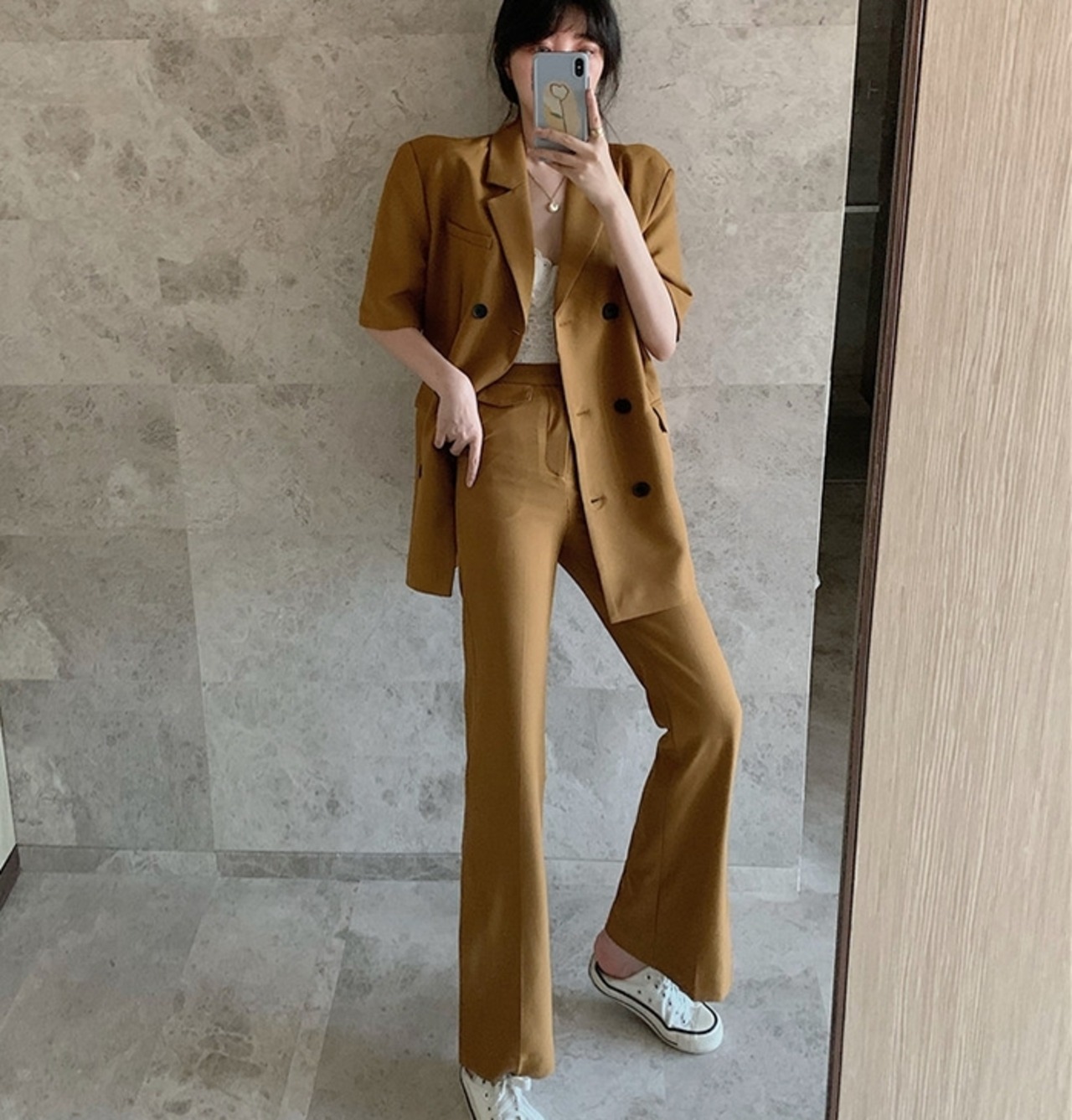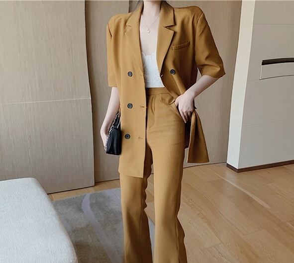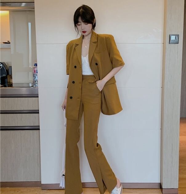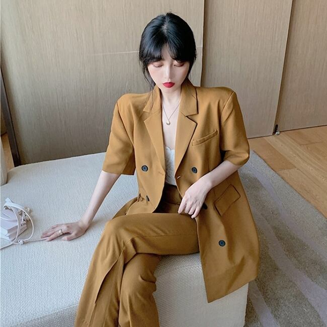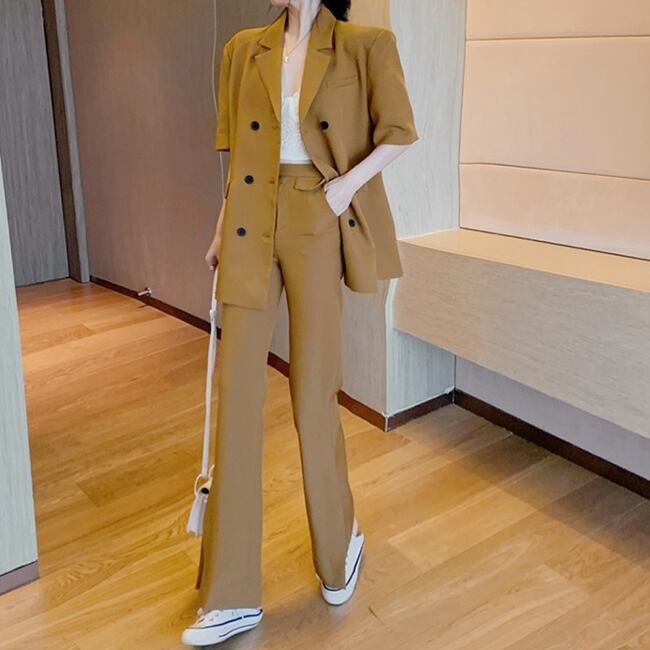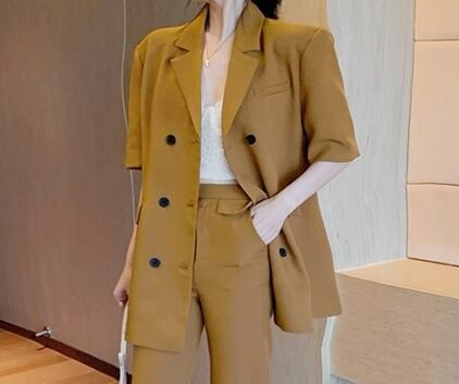セットアップ ツーピース ジャケット テーラードジャケット スラックスパンツ 5分袖 ハイウエスト スーツ カジュアル きれいめ 上品 シック 学生 通勤 お出かけ デート 女子会 秋