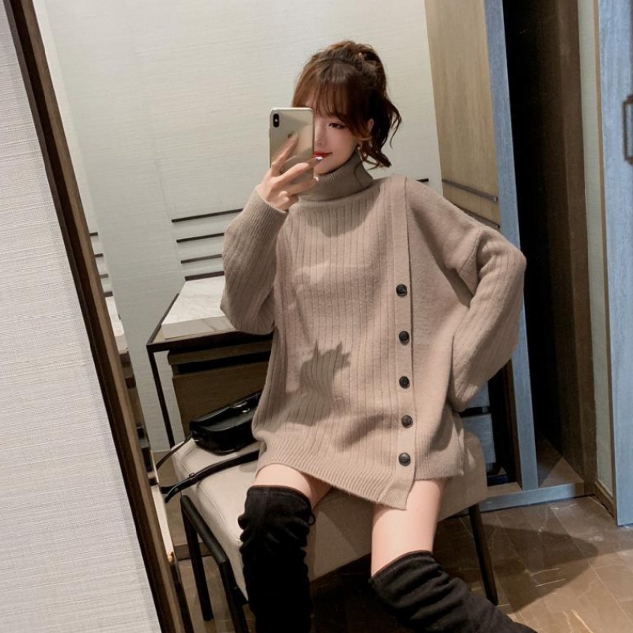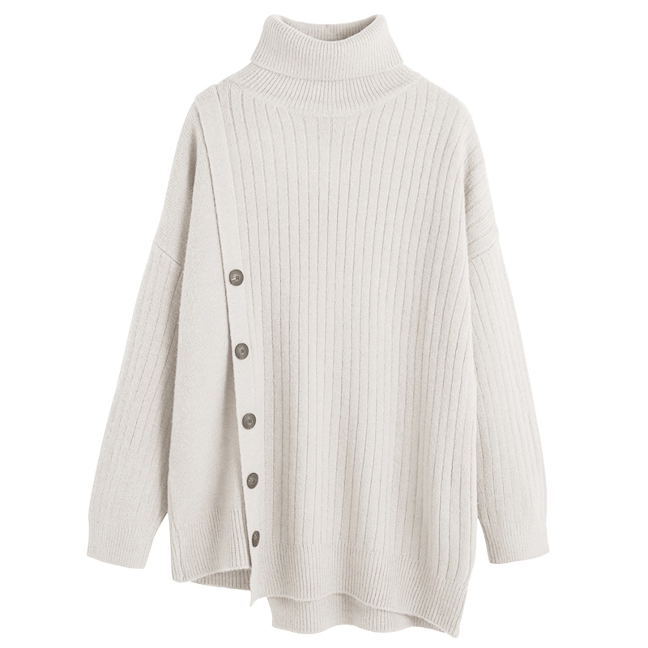 全3色 トップス セーター ニット プルオーバー ゆったり ロングスリーブ ボタン 大人 ハイネック タートルネック カジュアル デイリー お出かけ 秋 冬