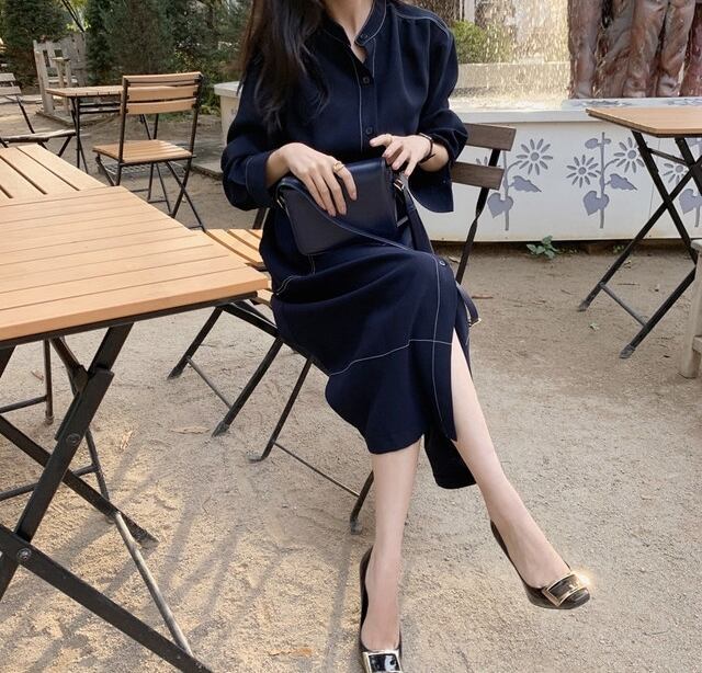 上品で大人っぽい印象のミモレ丈ワンピース。
