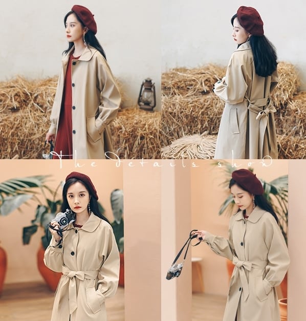 コート ロングコートトレンチコート ウエストリボン カジュアル きれいめ 大人 お出かけ ボタン デート エレガント 上品 女子会 秋