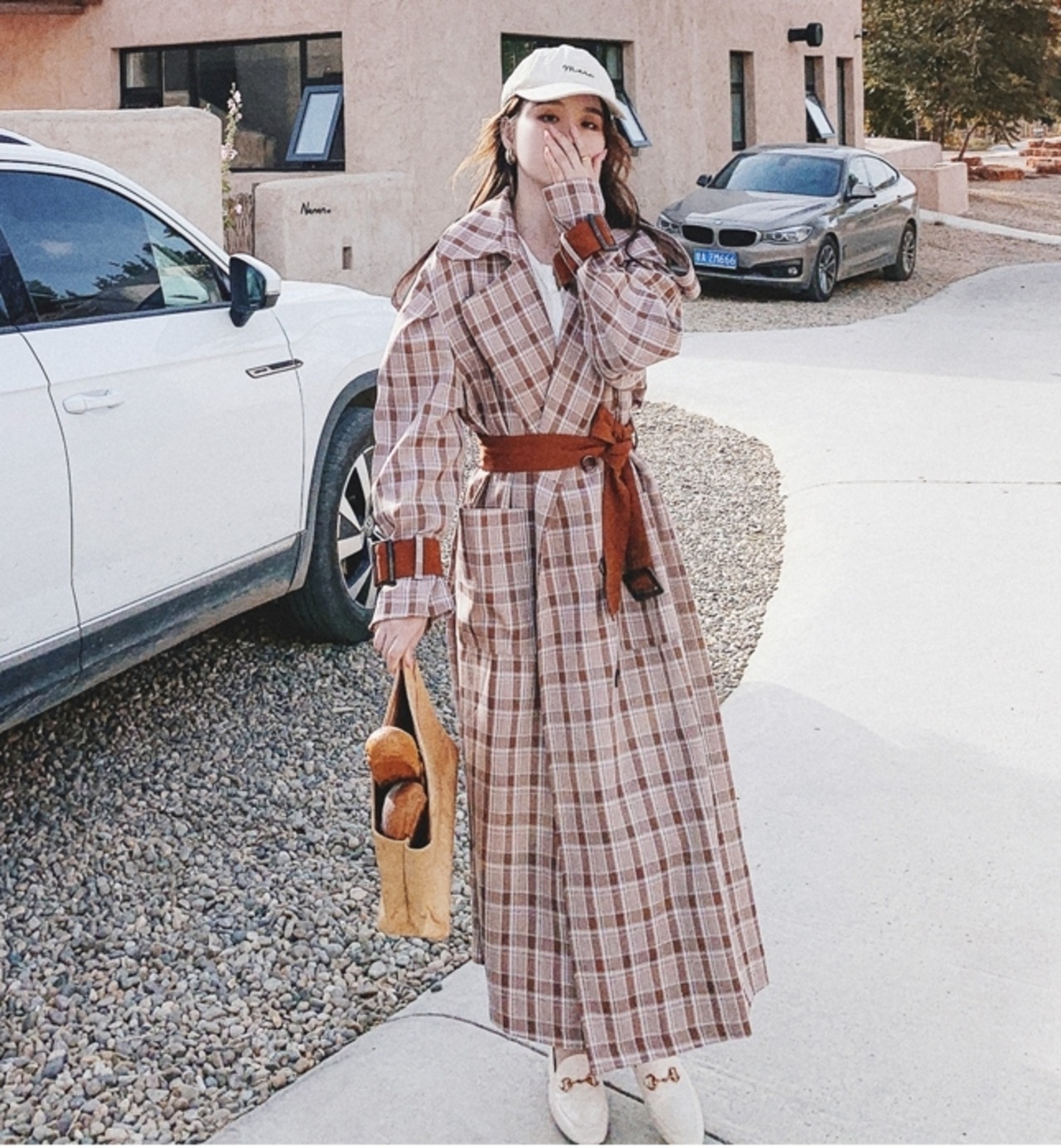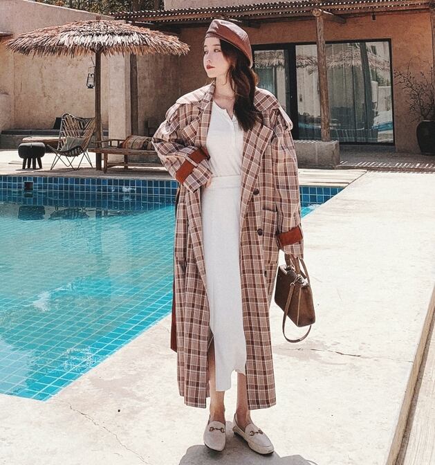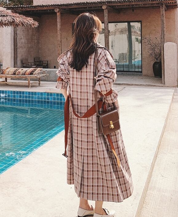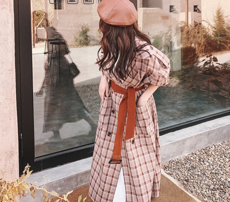 トレンドのチェック柄がお洒落なロングコート。