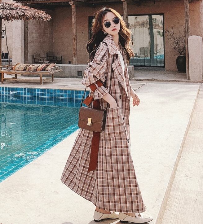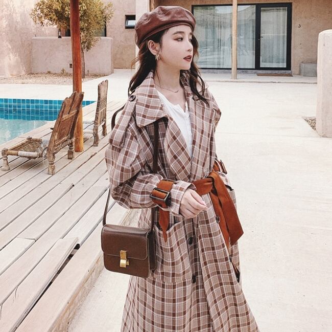 チェック柄 コート ロングコートトレンチコート ウエストベルト カジュアル きれいめ 大人 お出かけ ボタン デート エレガント シック 上品 デート 女子会 レトロ ユニーク 秋