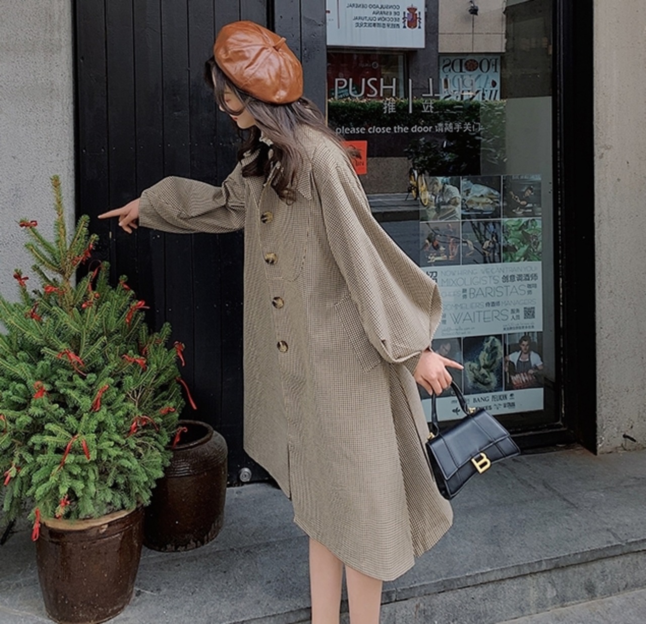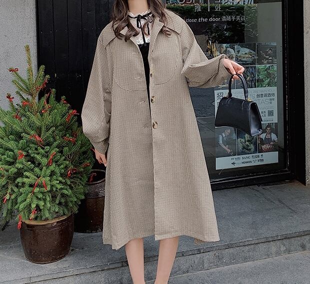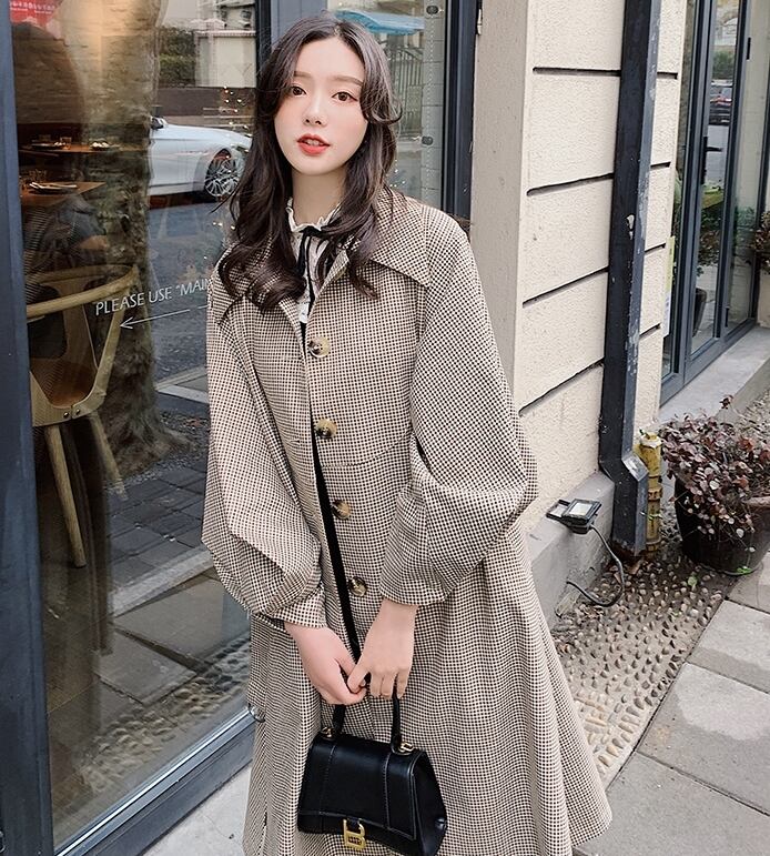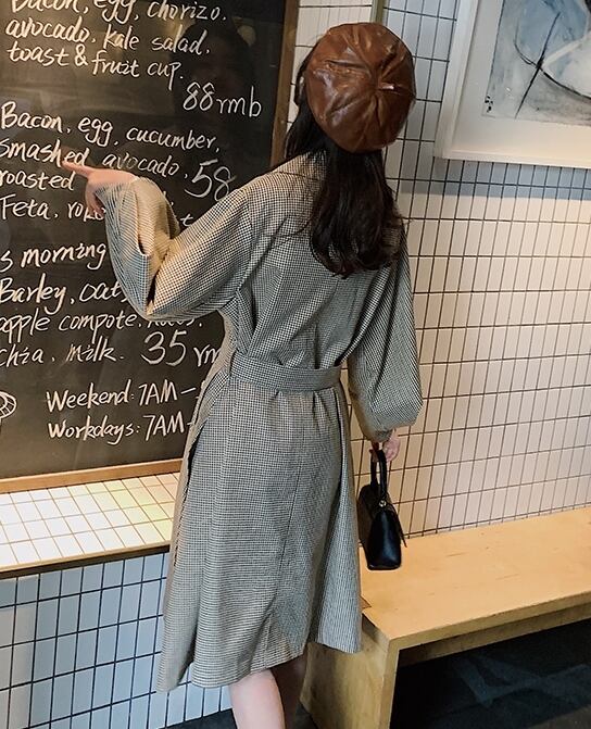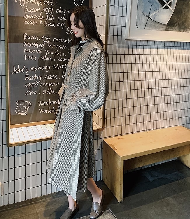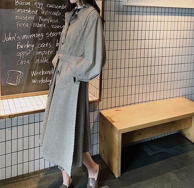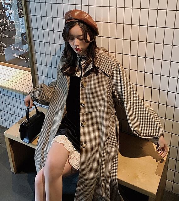 千鳥格子 コート ロングコート ウエストベルト カジュアル きれいめ 大人 お出かけ ボタン デート ゆったり 袖コンシャス エレガント シック 通勤 上品 女子会 レトロ ユニーク 秋
