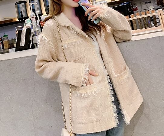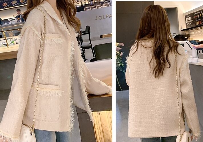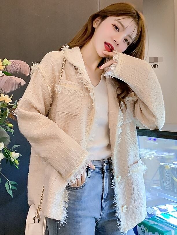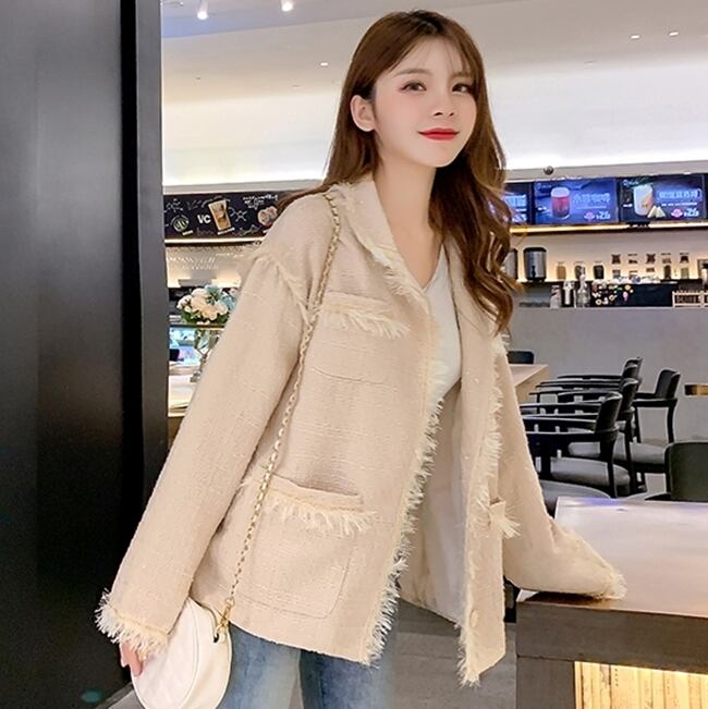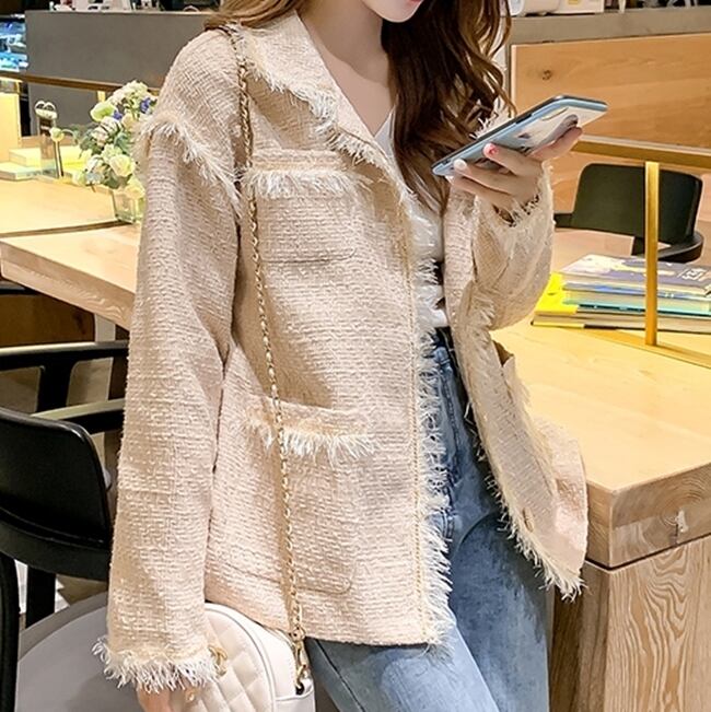 ツイードジャケット コート トレンチ フリンジ カジュアル きれいめ シック 上品 大人可愛い お出かけ ボタン デート 通勤 通学 OL 女子会 秋