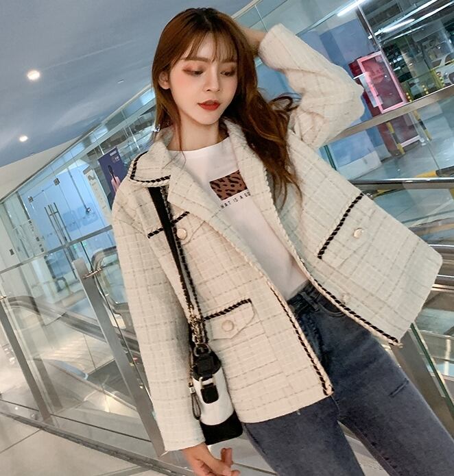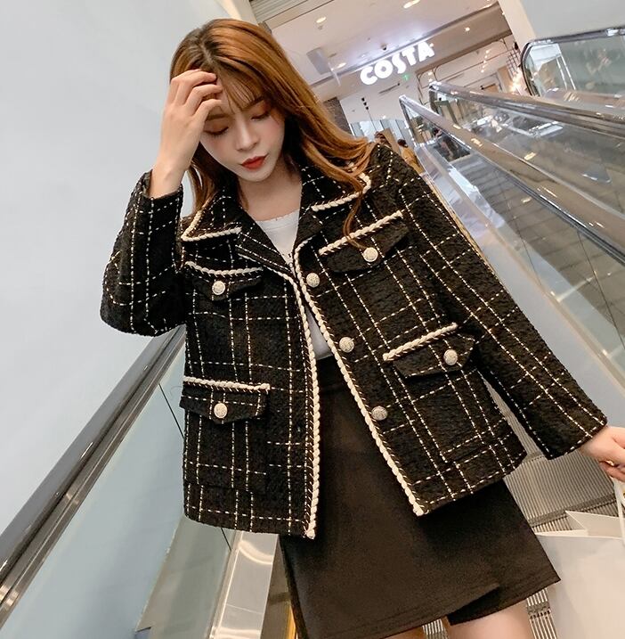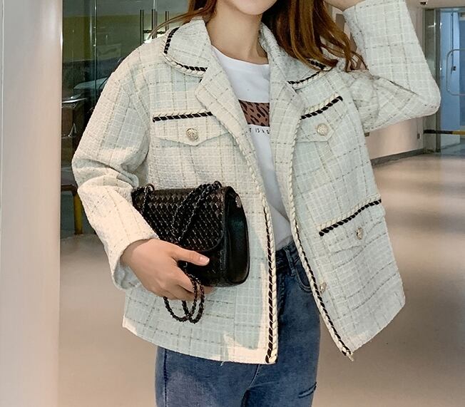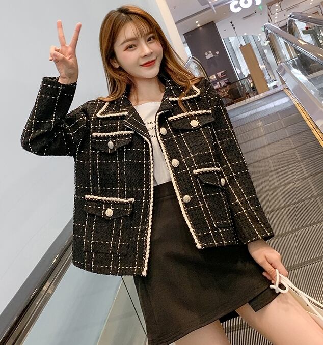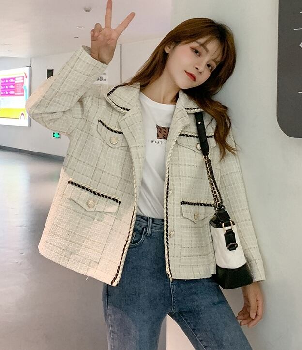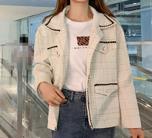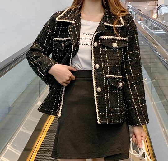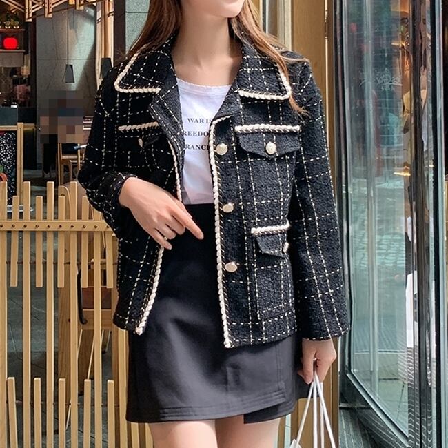 ツイードジャケット コート チェック柄 モノトーン カジュアル きれいめ シック エレガント 上品 大人 お出かけ ボタン デート 女子会 お呼ばれ 韓国ファッション 秋