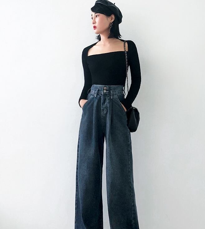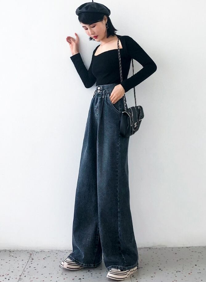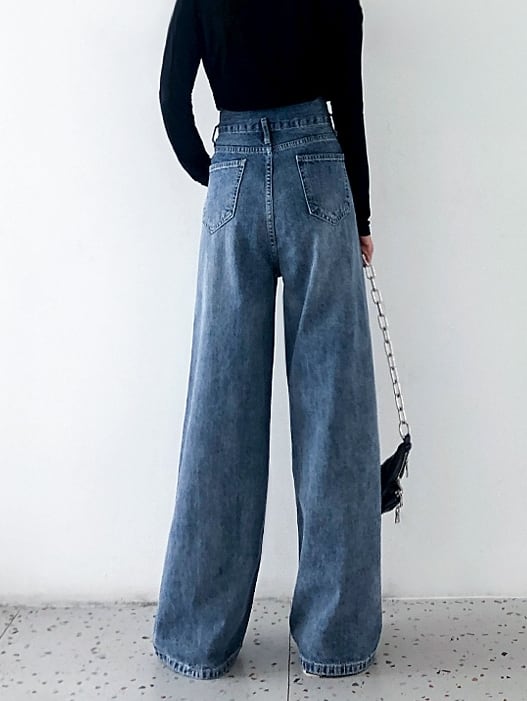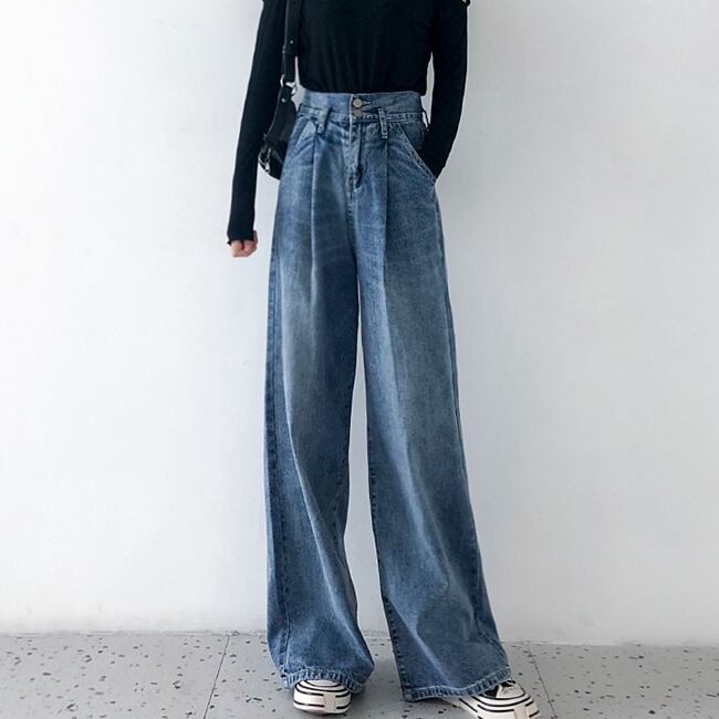 全2色 デニムパンツ フレアパンツ タックパンツ オーバーサイズ パンツ ボトムス ジーンズ ハイウエスト ワイドパンツ ゆったり カジュアル ラフ デイリー 大人 メンズライク レトロ 春 夏