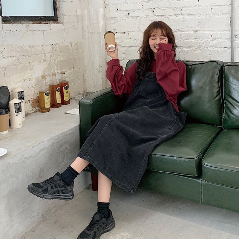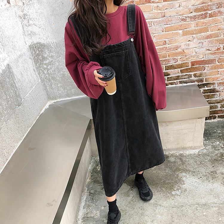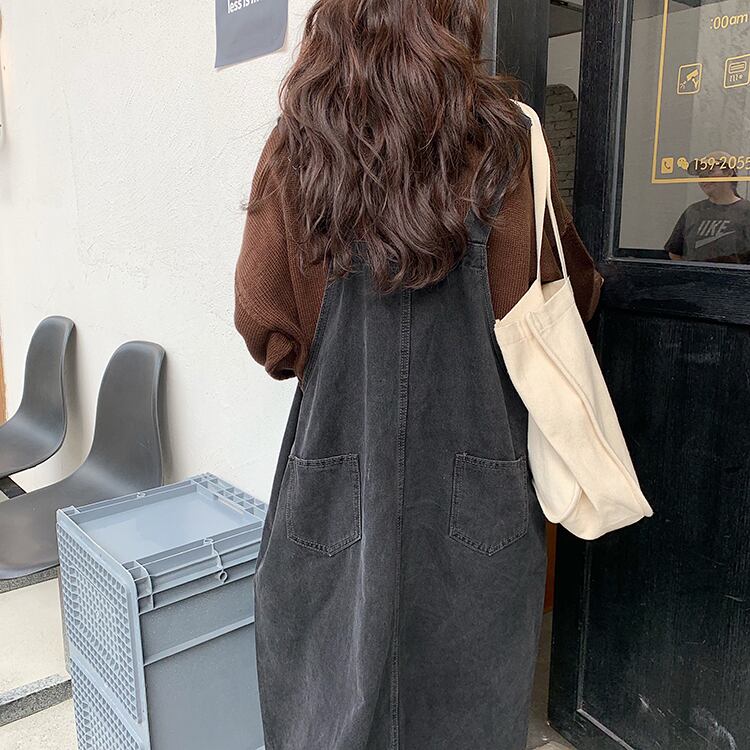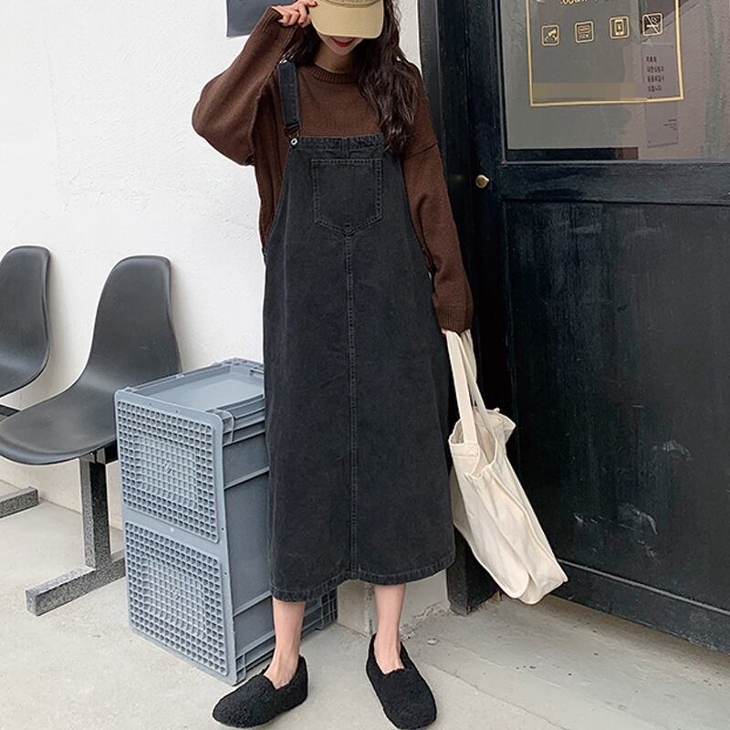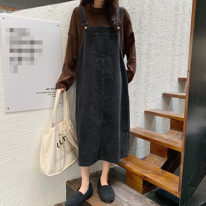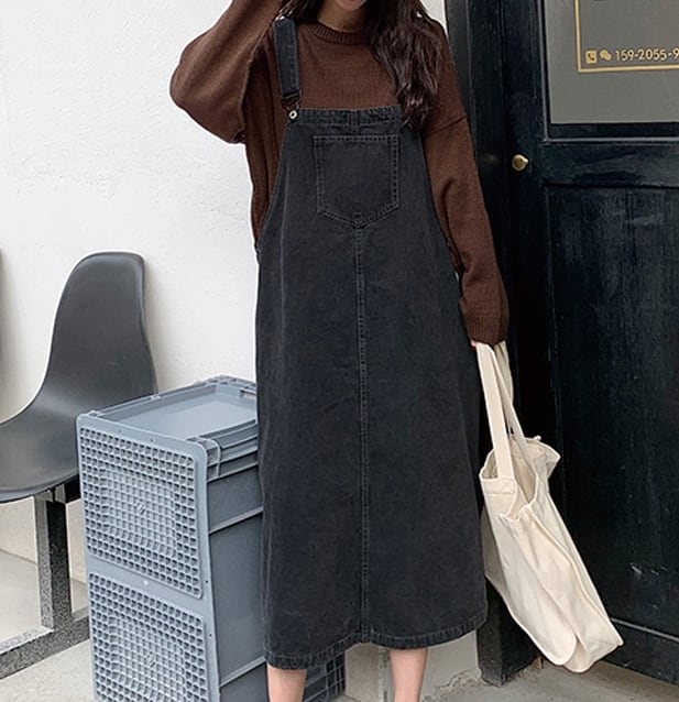 サロペットスカート デニム ジャンパースカート サスペンダー デニムワンピース ミモレ丈 カジュアル 大人 お出かけ デート スリム ジーンズ 秋 冬