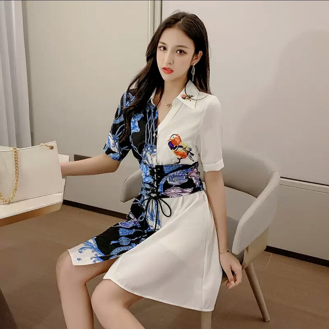襟つき アシンメトリー バイカラー ワンピース ショート丈 大人 可愛い キレイめ エレガント 個性派 お出かけ お買い物 デート 女子会 通勤 通学 学生 春 夏