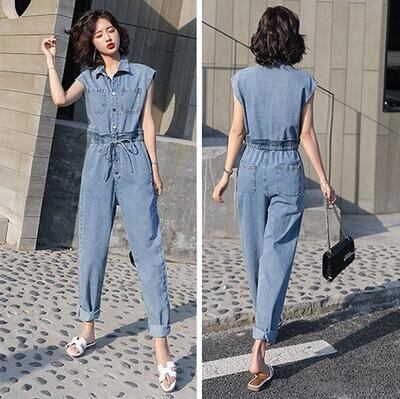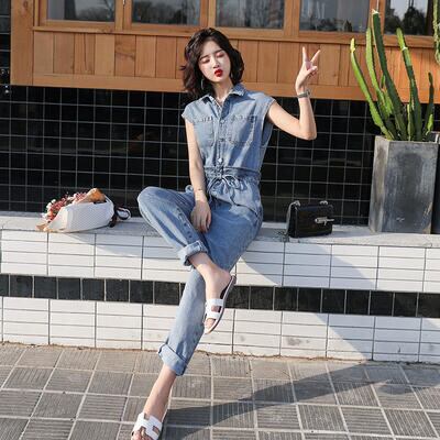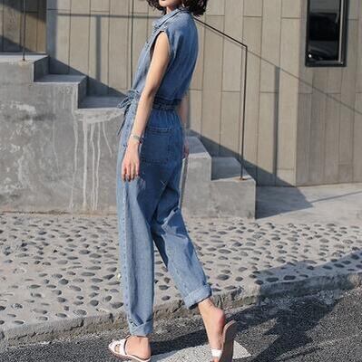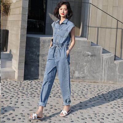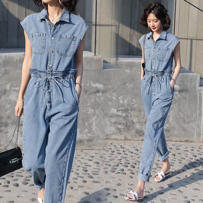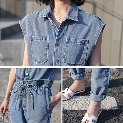 程よいゆったり感が細見えするデニムのジャンプスーツ。