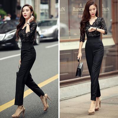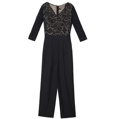 透け感のあるレーストップスがセクシーな大人のジャンプスーツ。