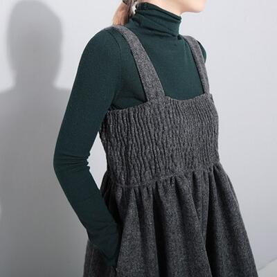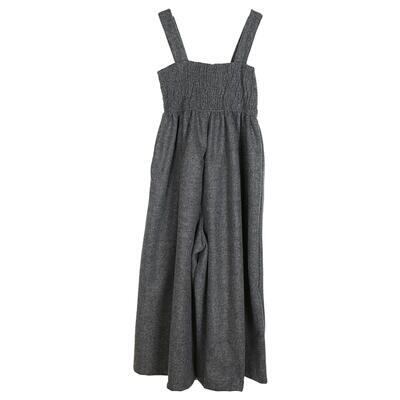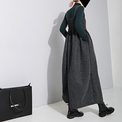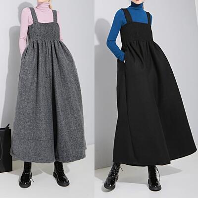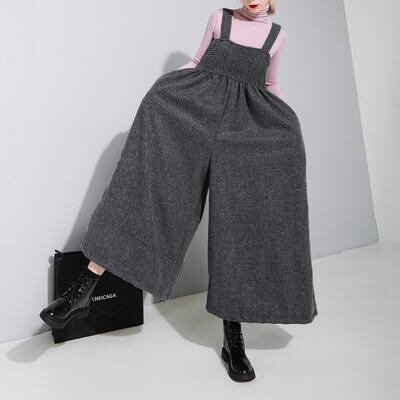 全2色 オールインワン レディース サロペット パンツ 秋冬 おしゃれ ジャンプスーツ ワイドパンツ ビッグシルエット シャーリング ロング丈 ゆったり カジュアル デイリーユース 普段着 黒 ブラック グレー 20代 30代 40代 50代