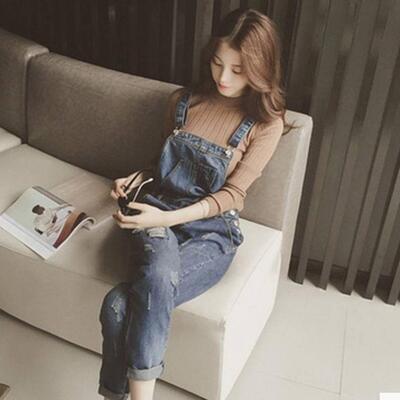 オールインワン レディース サロペット パンツ 秋冬 おしゃれ ジャンプスーツ デニム オーバーオール ダメージ スリムパンツ ストレートパンツ 9分丈 カジュアル アウトドア 大きいサイズ 体型カバー お出かけ デート 普段着 ブルー XL 20代 30代 40代 50代