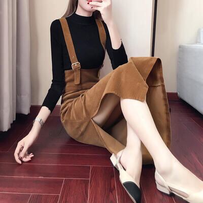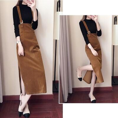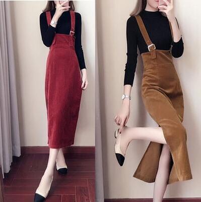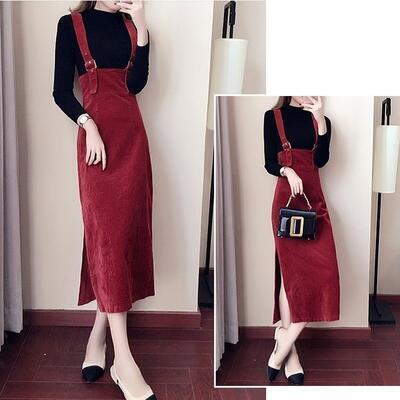 全2色 サロペット スカート ロング 秋冬 ストラップスカート ハイウエスト タイトスカート ロング丈 スリット コーデュロイ 大きいサイズ カジュアル お出かけ デート 普段着 ワインレッド ブラウン XL 20代 30代 40代 50代