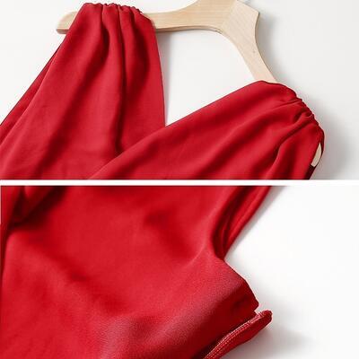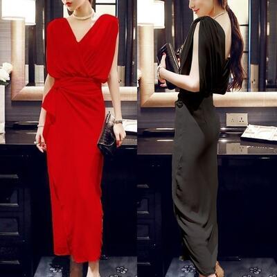 全2色 ワンピース ドレス パーティードレス Vネック ノースリーブ ハイウエスト ロング丈 フェミニン エレガント きれいめ 結婚式 大きいサイズ XL 2XL ブラック 黒 レッド 赤 20代 30代 40代 50代