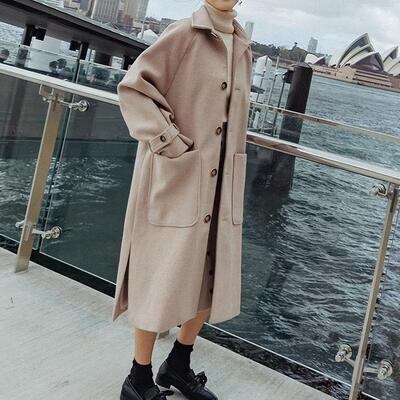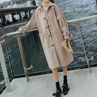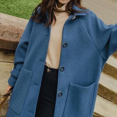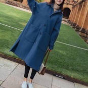 全2色 コート レディース 秋冬 アウター ウールコート ミドル丈 ロング丈 シンプル ゆったり 体型カバー 大きいサイズ カジュアル オフィス 通勤 お出かけ 普段着 XL ベージュ ブルー 20代 30代 40代 50代