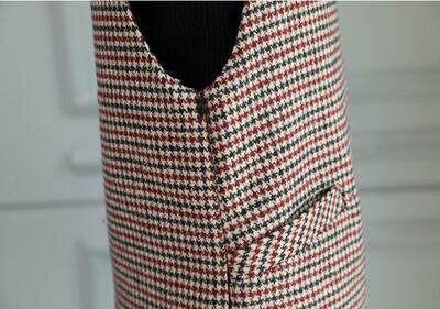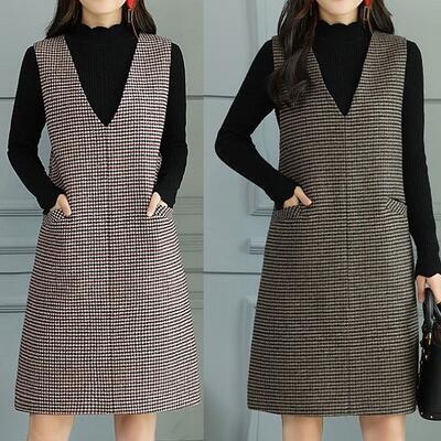 全2色 オールインワン レディース スカート 秋冬 カジュアル きれいめ ジャンパースカート Vネック ひざ丈 千鳥格子 チェック ゆったり 体型カバー 大きいサイズ XL レッド グリーン 2XL 20代 30代 40代 50代