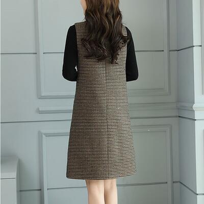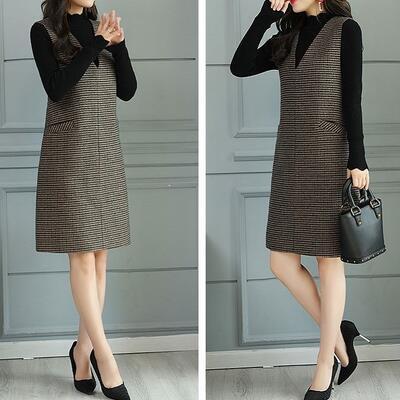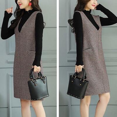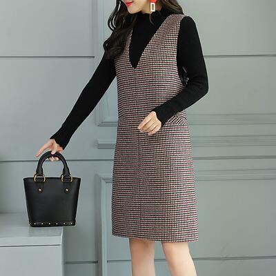 千鳥格子がクラシカルな印象のひざ丈ジャンパースカート。