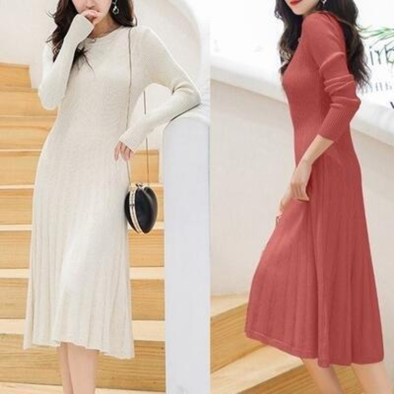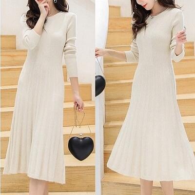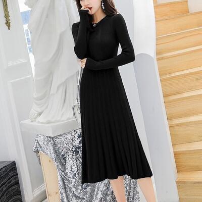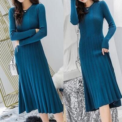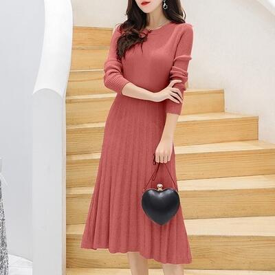全5色 ワンピース レディース 秋冬 カジュアル おしゃれ ニットワンピース ニットドレス ラウンドネック 長袖 フレアスカート ひざ丈 タイト きれいめ お出かけ 女子会 デート 普段着 アプリコット ブラック ブルー レッド グリーン 20代 30代 40代 50代