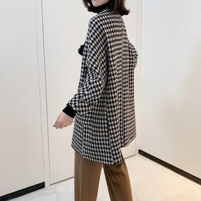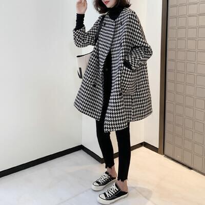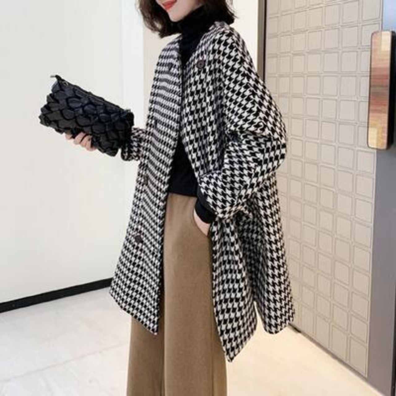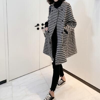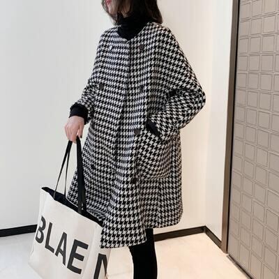 アウター コート レディース カジュアル きれいめ 冬 ウールコート ノーカラーコート ミドル丈 ラウンドネック 千鳥格子 フェミニン カジュアル お出かけ 通勤 普段着 ゆったり 体型カバー 防寒 20代 30代 40代 50代