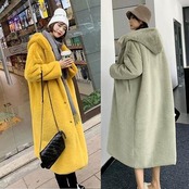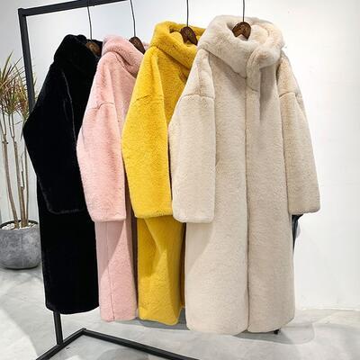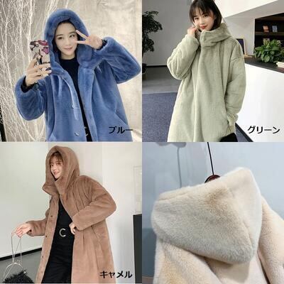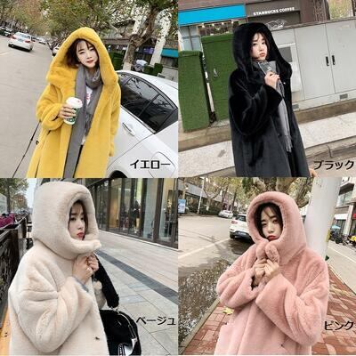 全7色 アウター コート レディース カジュアル きれいめ 冬 大きいサイズ ロングコート ファーコート フェイクファー フード付き もこもこ フェミニン かわいい ゆったり 体型カバー 防寒 イエロー ブラック ベージュ ピンク ブルー グリーン キャメル XL 20代 30代 40代 50代