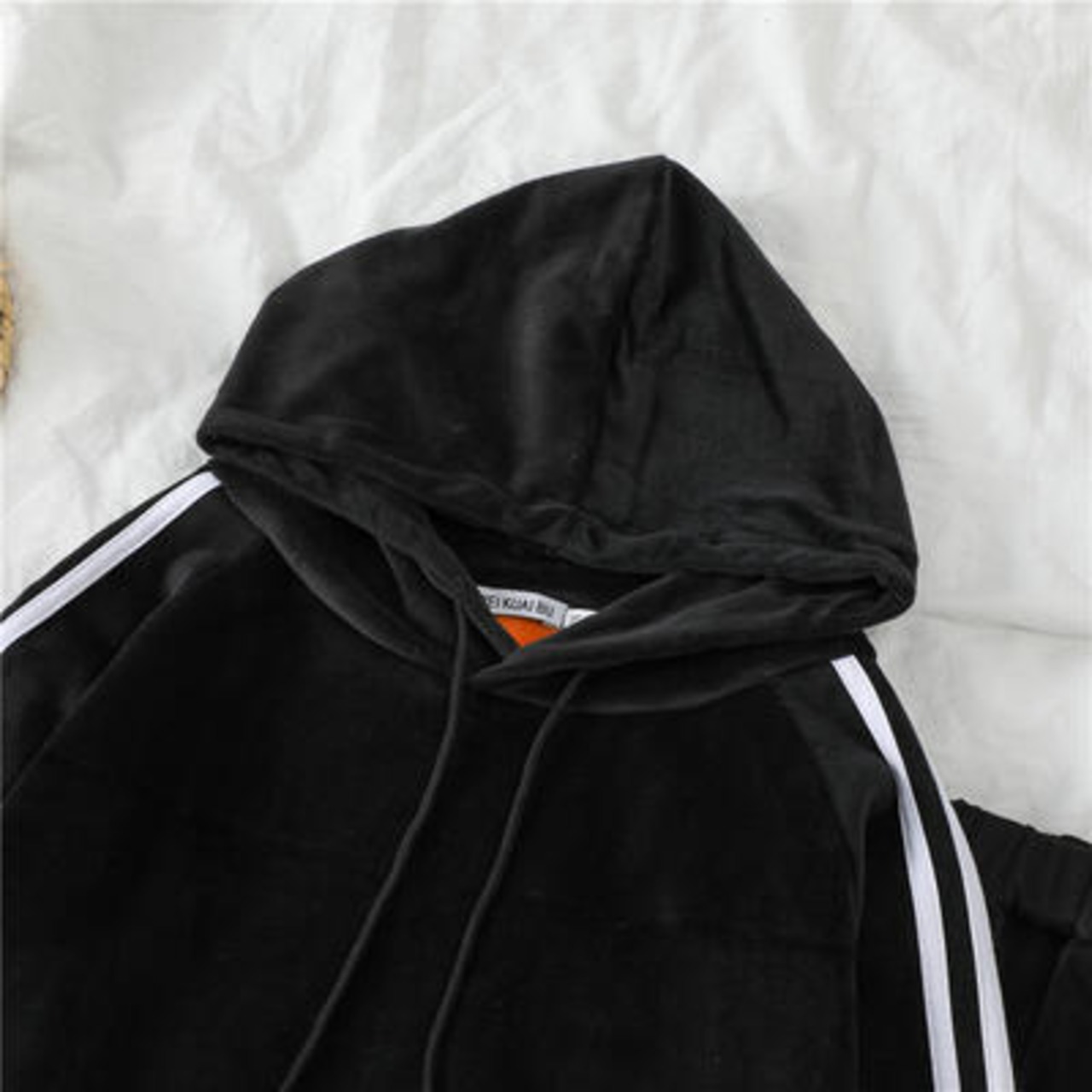 セットアップ レディース 秋冬 春 大きいサイズ 上下セット スポーツウェア ジャージ 3本ライン フード付き ベルベット ゆったり 体型カバー 大人可愛い カジュアル リラックス スポーティ アウトドア 普段着 ブラック 黒 XL 2XL 20代 30代 40代 50代