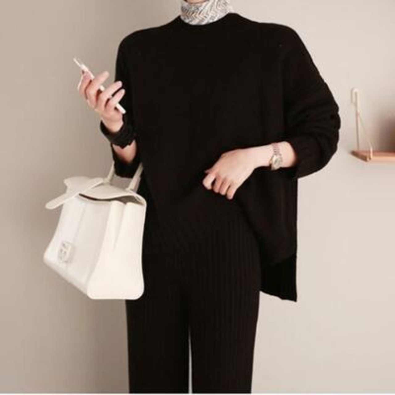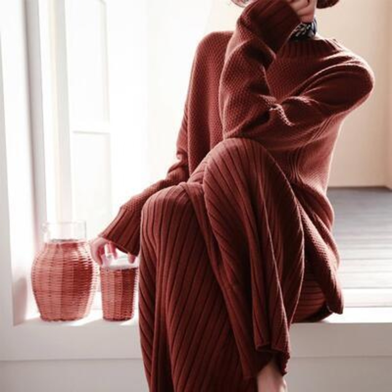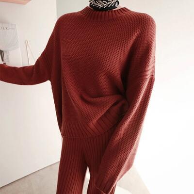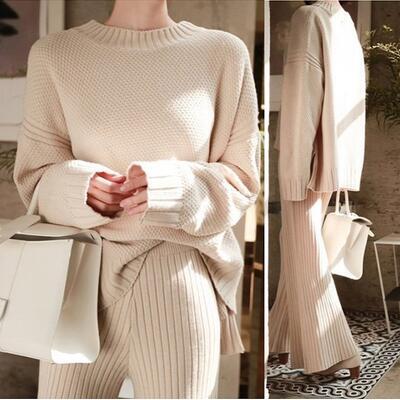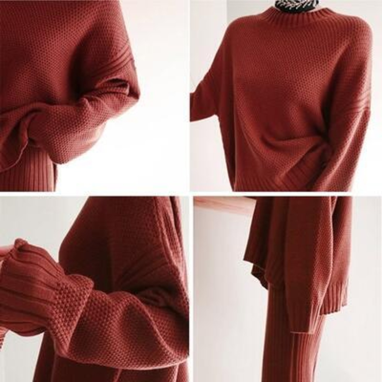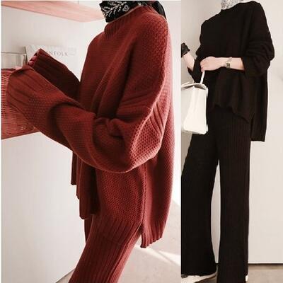 ビックシルエットでゆったり着られるニットのセットアップ。