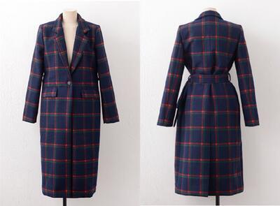 暖かみのあるチェック柄が可愛いロング丈のチェスターコート。