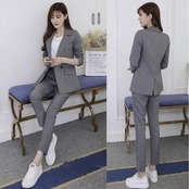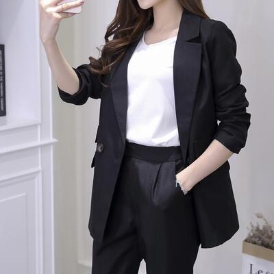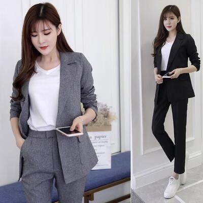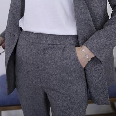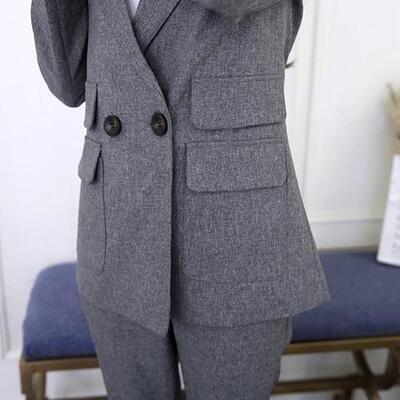 全2色 セットアップ レディース 秋冬 春 大きいサイズ パンツスーツ 上下セット 2点セット ビジネススーツ 長袖 ジャケット アンクルパンツ クロップドパンツ カジュアル きれいめ オフィス 通勤 お出かけ 普段着 女子会 グレー ブラック 黒 XL 20代 30代 40代 50代