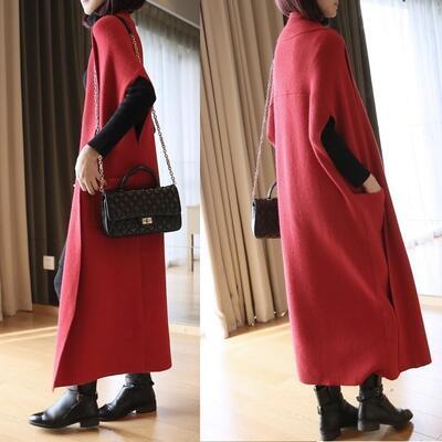 全4色 アウター コート レディース カジュアル きれいめ 冬 大きいサイズ ロングベスト カーディガン ニット 羽織 大人かわいい フェミニン お出かけ 通勤 普段着 ゆったり 体型カバー 防寒 ブルー レッド ブラック グレー XL 2XL 20代 30代 40代 50代