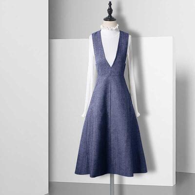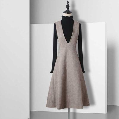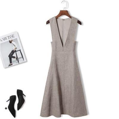全3色 オールインワン レディース サロペット 秋冬 ジャンパースカート Vネック ハイウエスト ひざ丈 フレアスカート Aライン きれいめ カジュアル オフィス 普段着 大きいサイズ ブルー グレー ブラウン XL 2XL 20代 30代 40代 50代