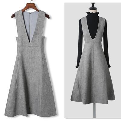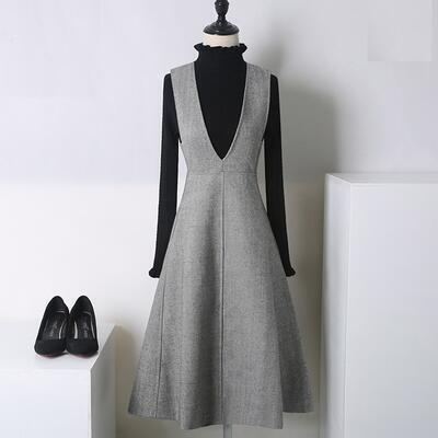 ウエストから広がるフレアラインが綺麗なジャンパースカート。