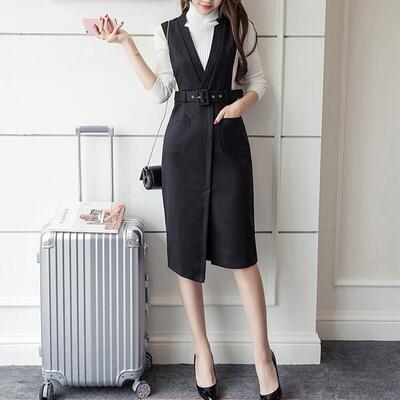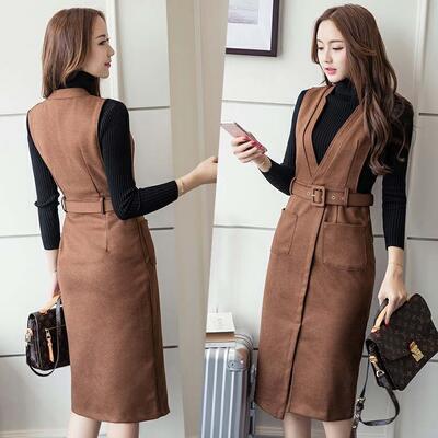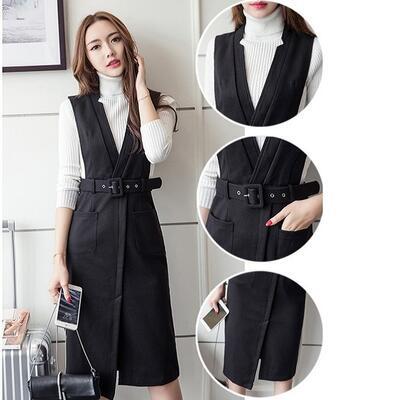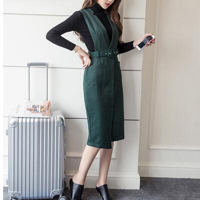 全3色 オールインワン レディース サロペット 秋冬 ジャンパースカート Vネック ハイウエスト ウエストマーク ひざ丈 ミディ丈 スリット きれいめ 女子会 カ全3色 ジュアル オフィス 普段着 大きいサイズ ブラック ブラウン グリーン XL 2XL 20代 30代 40代 50代