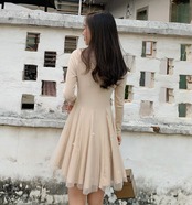 ふわっと軽く仕上げたスカートが可愛らしい印象のワンピース。