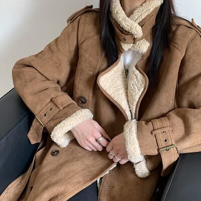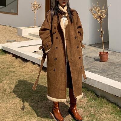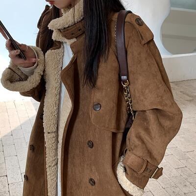 アウター コート レディース カジュアル きれいめ 冬 ロングコート テーラードコート ラムウール ムートン 厚手 裏ボア 防寒 ウエストマーク フロントボタン 大人かわいい アウトドア 普段着 通勤 ブラウン 20代 30代 40代 50代