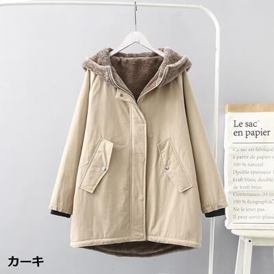 全3色 アウター コート レディース カジュアル きれいめ 冬 大きいサイズ ジャケット フード付き ダウン モッズコート 裏ボア ベルベット かわいい お出かけ 通勤 通学 普段着 ゆったり 体型カバー 防寒 カーキ ブラック グレー XL 2XL 3XL 4XL 20代 30代 40代 50代