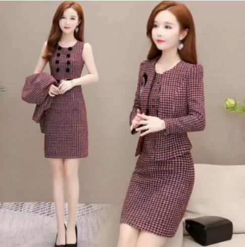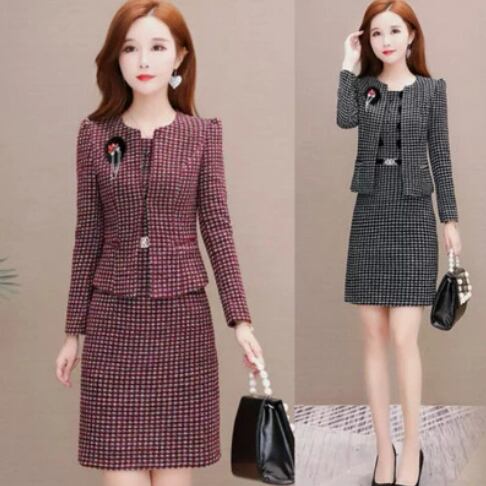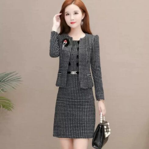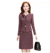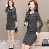 お洒落なウールツイードのセットアップ、ワンピーススーツです。