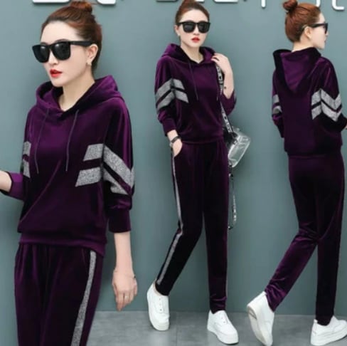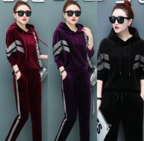 全3色 セットアップ レディース カジュアル お洒落 きれいめ ベルベット パーカー スウェット ジャージ ツーピース ルームウェア 上下セット 春秋 秋冬 ブラック 黒 パープル レッド 赤 ストリート スポーティー ゆったり 大きいサイズ XL 2XL 3XL 4XL 5XL 20代 30代 40代 50代