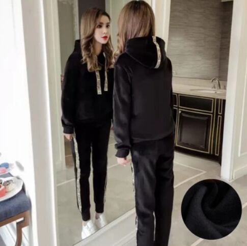 全2色 セットアップ レディース カジュアル おしゃれ きれいめ 春秋 秋冬 パーカー ベルベット 裏起毛 スウェット ツーピース 上下セット ストリート ブラック 黒 ピンク 大きいサイズ ゆったり 体型カバー ルームウェア 秋冬 2XL 3XL 20代 30代 40 50代