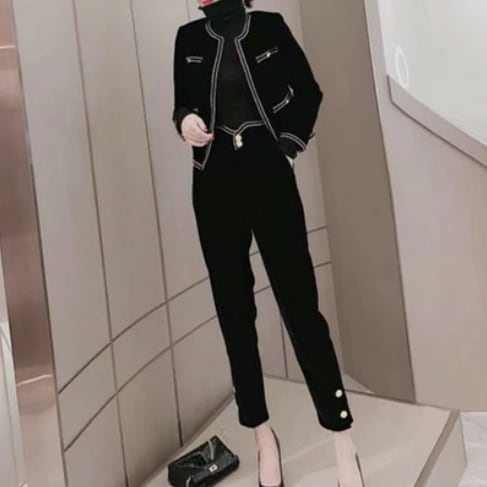 卒業式 スーツ ママ おしゃれ ジャケット セットアップ レディース 卒業式 入園式 卒園式 七五三 セレモニースーツ タートルネック 大きいサイズ パンツスーツ かっこいい 長袖 アンクルパンツ クロップドパンツ フォーマル きれいめ ブラック 黒 XL 20代 30代 40代 50代