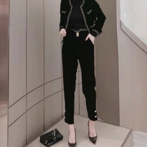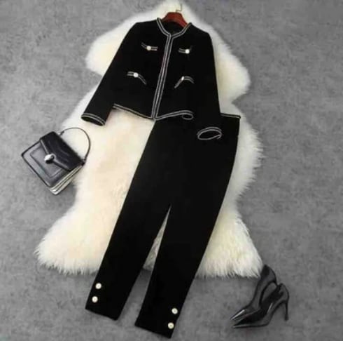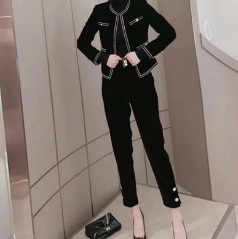 黒色がスリムなシルエット見せてくれるパンツスーツです。
