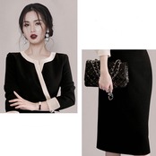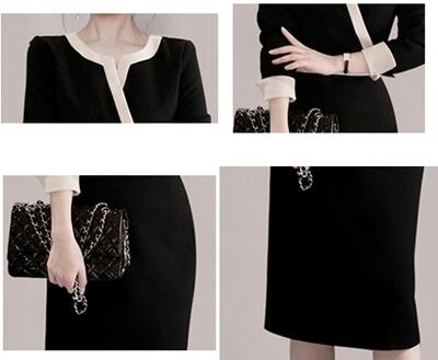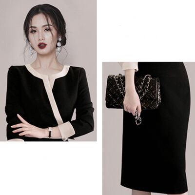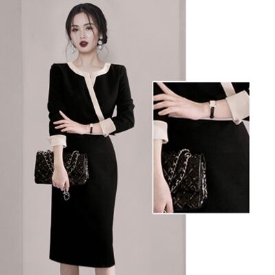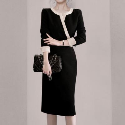 ワンピース 春 春秋 カジュアル きれいめ おしゃれ レディース 7分袖 ドレス ミディ丈 ワンピ カシュクール 袖あり ラウンドネック タイト エレガント ブラック ひざ下丈 お呼ばれ 黒 大きいサイズ XL 20代 30代 40代 50代