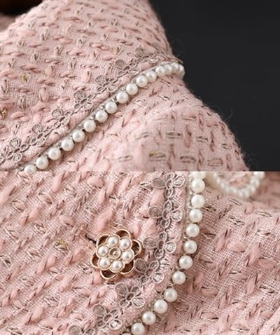 パールをあしらったデザインがフェミニンなセットアップ。